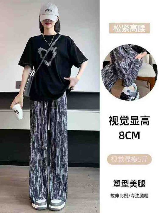 全清价6.9元冰凉感直筒冰丝阔腿裤女夏季薄款休闲防蚊显瘦垂感扎染裤子,独...