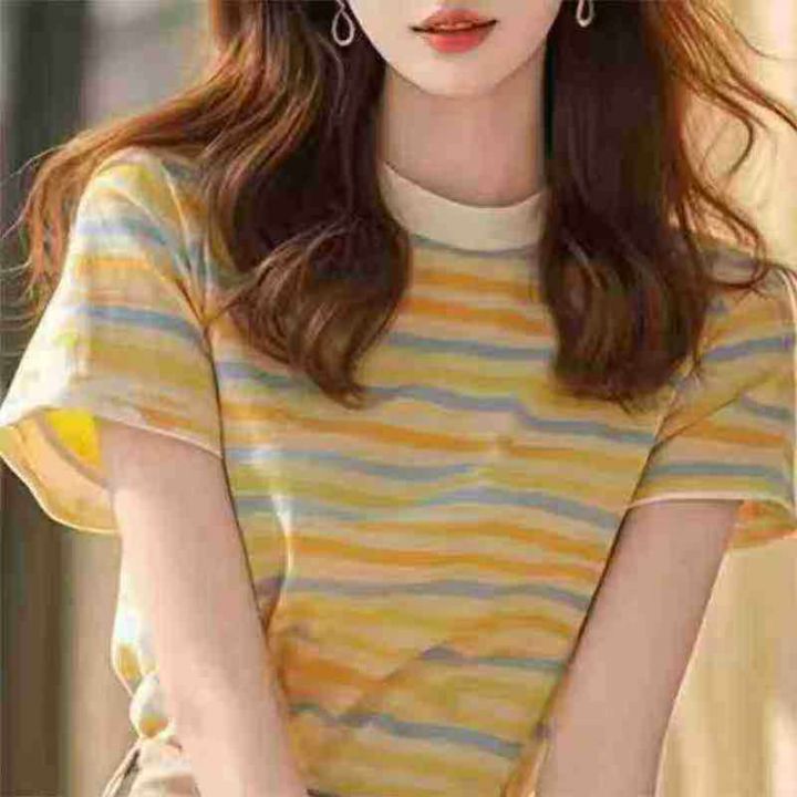 上新全清:5.8一件简约通勤ins设计感条纹圆领短袖,[爱心]260件左右,四个...