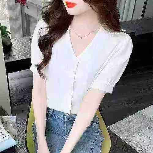 上新全清:10.8一件韩系V领设计感泡泡袖百搭上衣,[爱心]55件左右,杏色,...