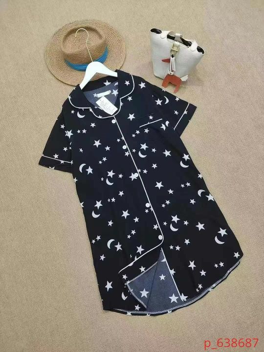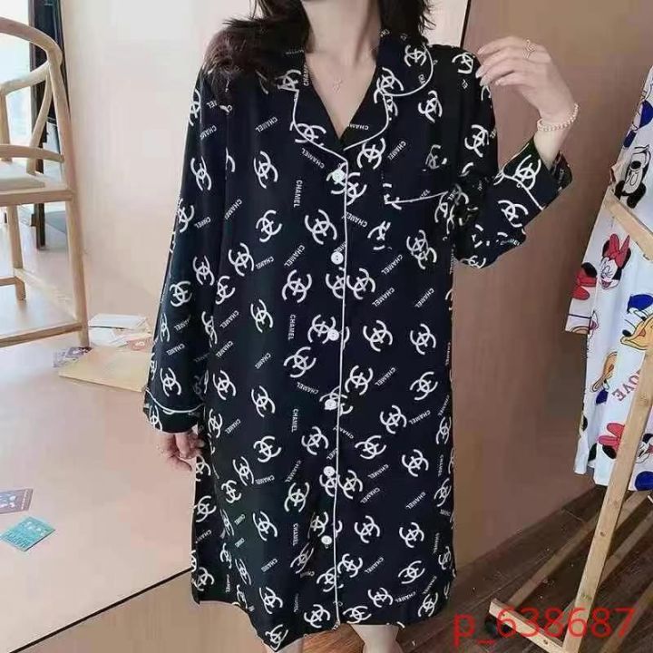[月亮]:图片3个整款 品质️ Fashion Spring Summer Mid-Length Flowing Home Shirt Nightgown قميص منزلي طويل متدفق صيفي ربيعي_@_@