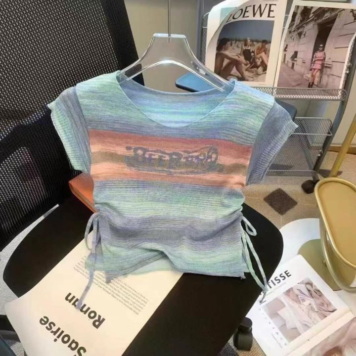 网络爆款CIVICERA品牌超好看甜辣美式针织上衣,女短款小众设计感别致港风抽绳T恤,总数1000件左右,全清5.5元,分货加0.5