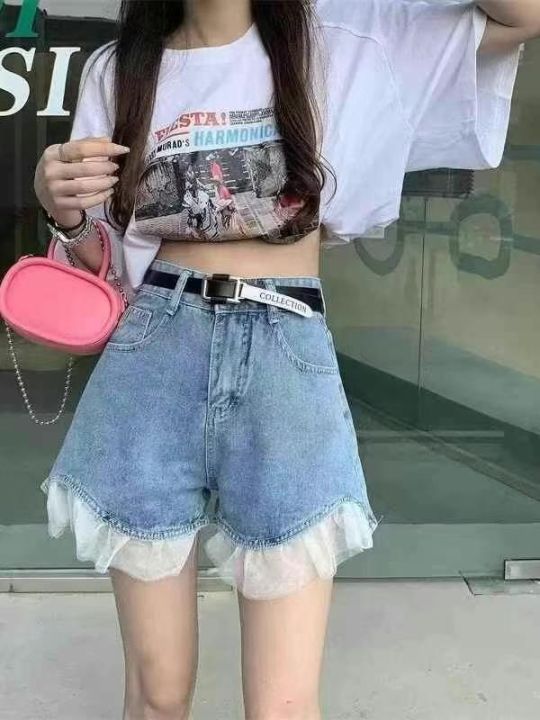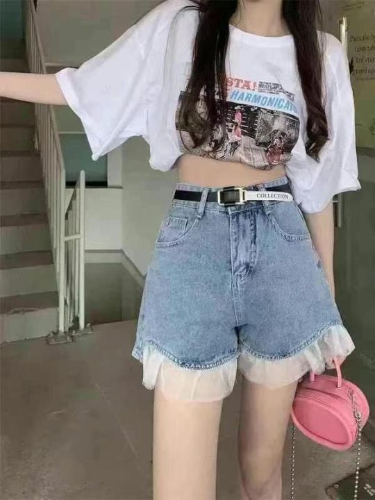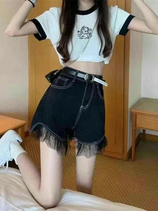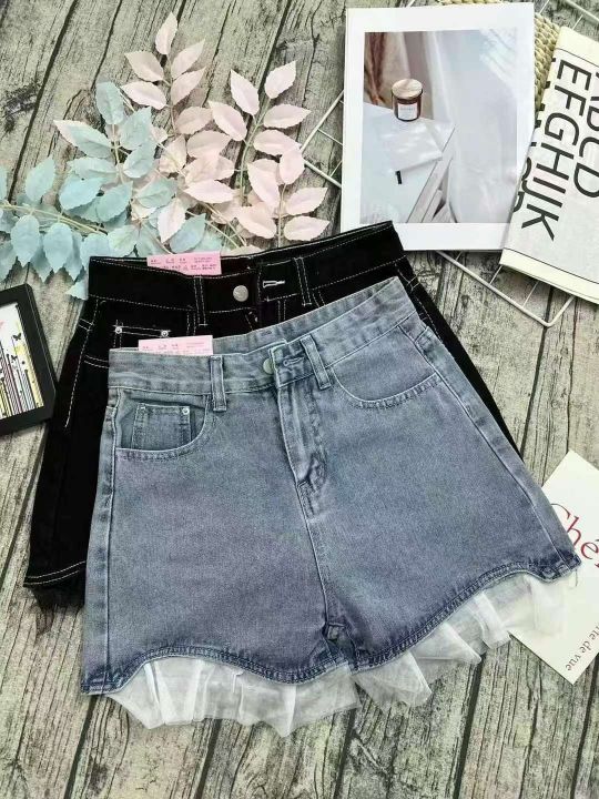 网红牛仔短裤300条全清9.9元,大码胖mm牛仔短裤S到XL, 黑色 蓝色,独立包装,夏季新款浅色辣妹风显瘦百搭大码高腰蕾丝边牛仔阔腿裤
