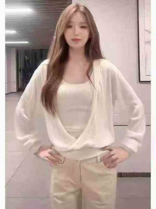 ️6180件\'美式甜辣妹韩版假两件长袖t恤女春夏修身打底衫撞色纯欲显瘦上衣...
