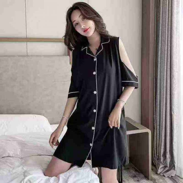 ① 网红冰丝性感露肩韩版宽松家居睡裙!独立包装,整款五色,码数M-2XL,数...