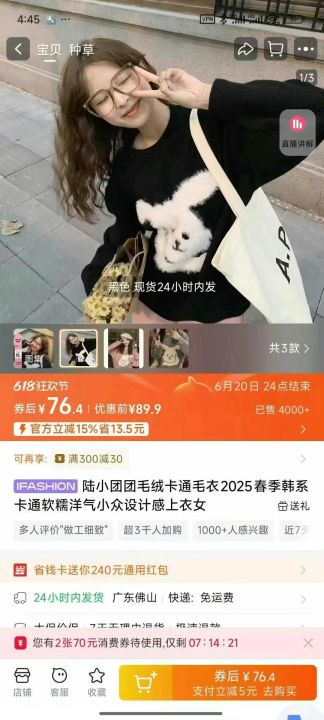 淘宝在售陆小团团毛绒卡通毛衣春季韩系卡通软糯洋气小众设计感针织衫,质感一绝,独立包装,均码80-130斤,365件,全清12.8分货➕1