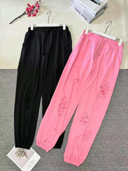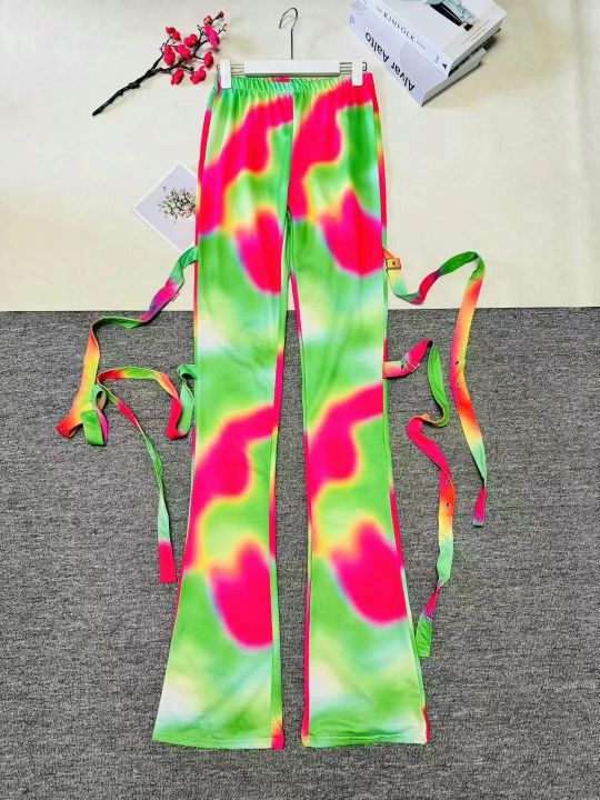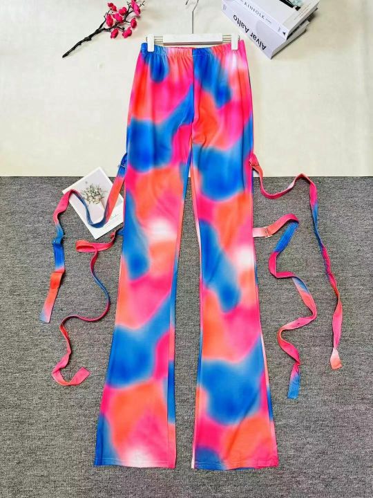 时尚个性休闲双面破洞束脚裤/洋气显瘦扎染修长微喇叭裤,2个整款,数量291条,码数S-2XL,面料品质好,拉链式独立包装。