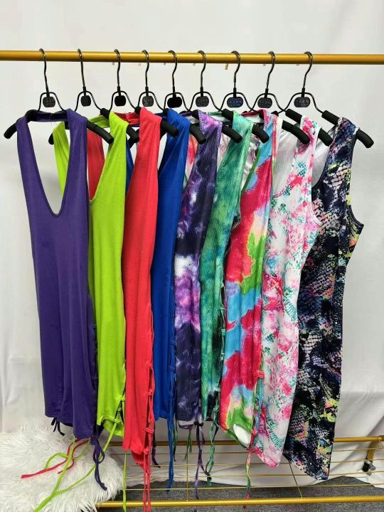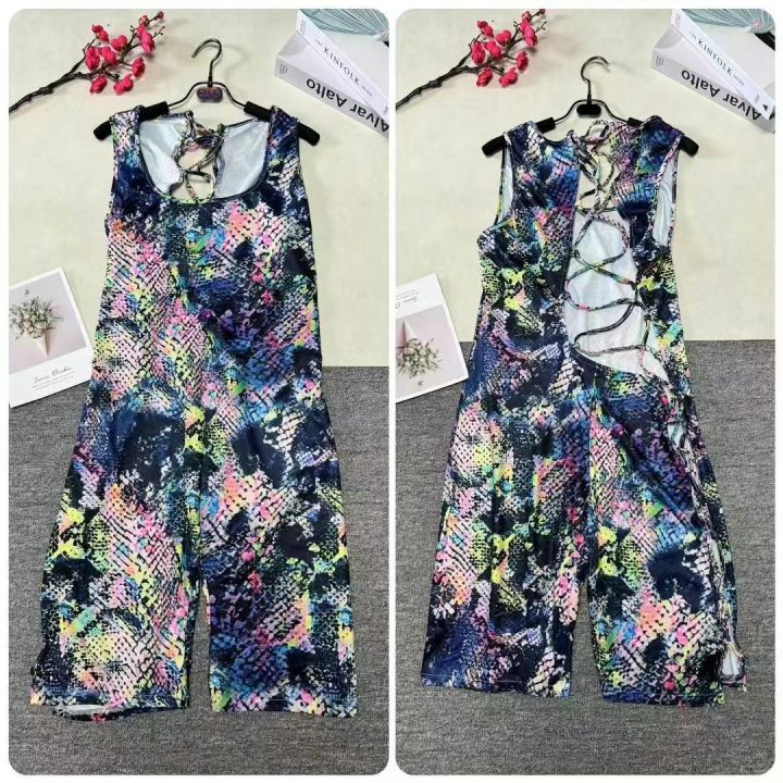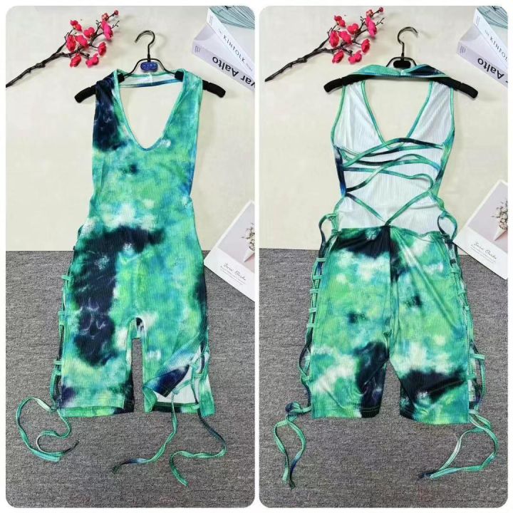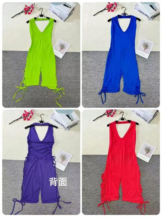 美式辣妹挂脖吊带印花打底衫性感露背绑带短款连体衣,3个整款多颜色,数量945套,面料高弹力品质好,拉链式独立包装。