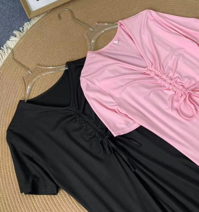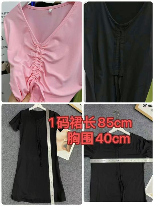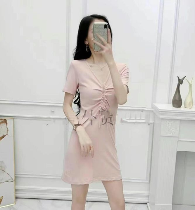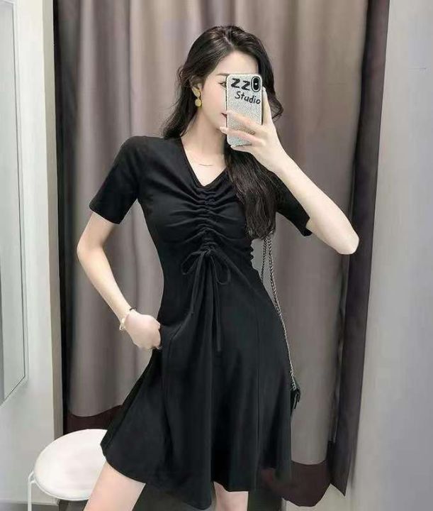 法式短袖连衣裙425件6.9,面料有弹力,抽绳褶皱设计,...