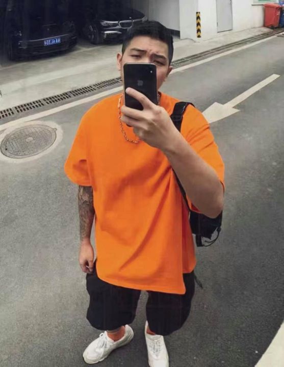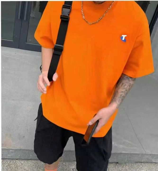 夏季男女同款双面印花纯棉落肩大版T桖,5件1包装,码...