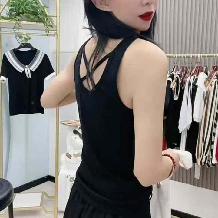 U领冰丝吊带女夏法式别致高级感交叉设计修身背心上衣...