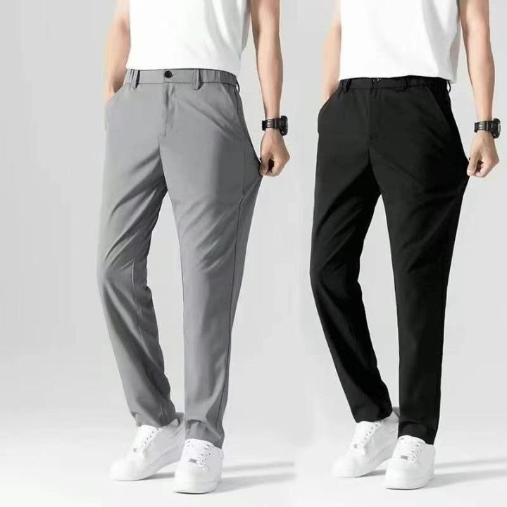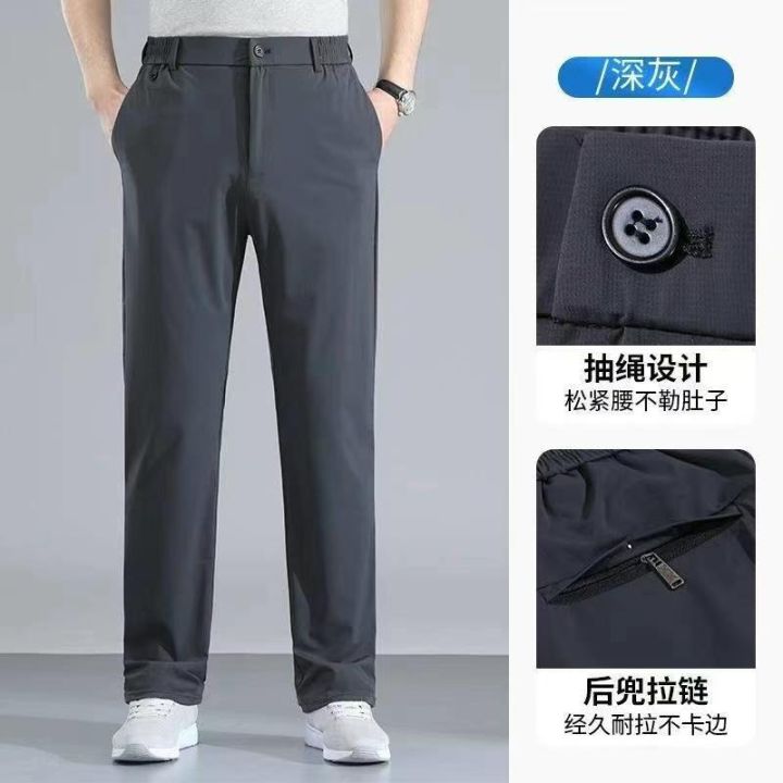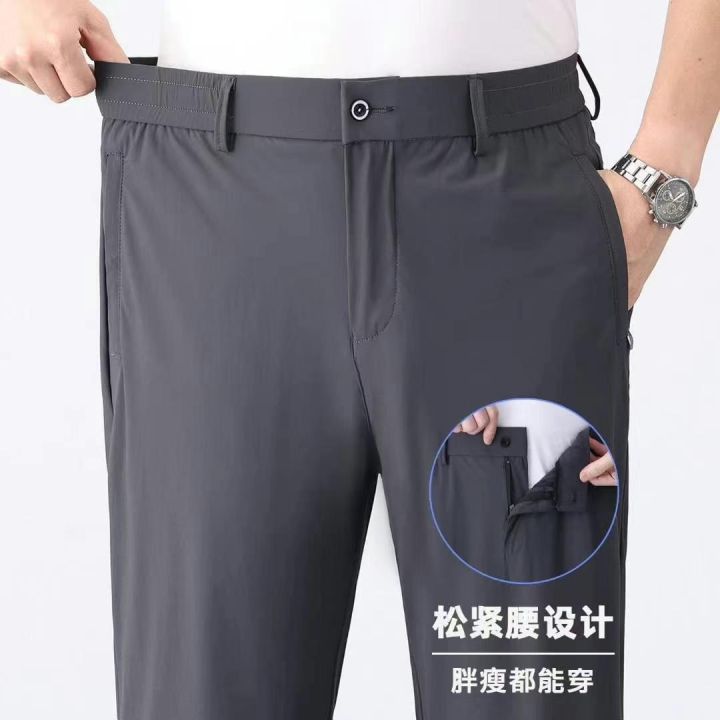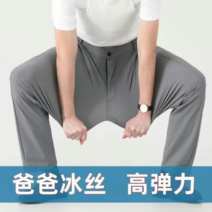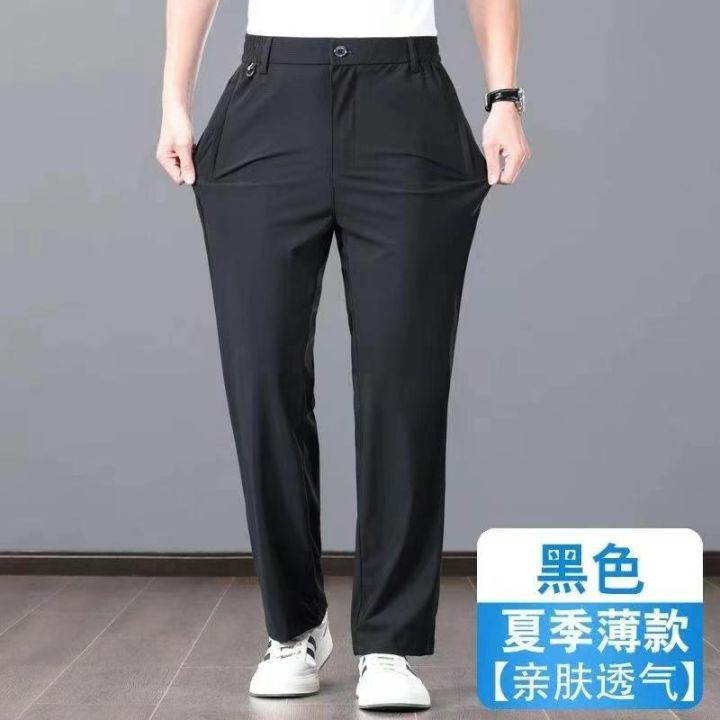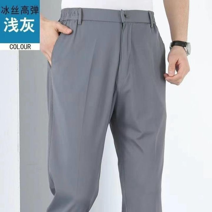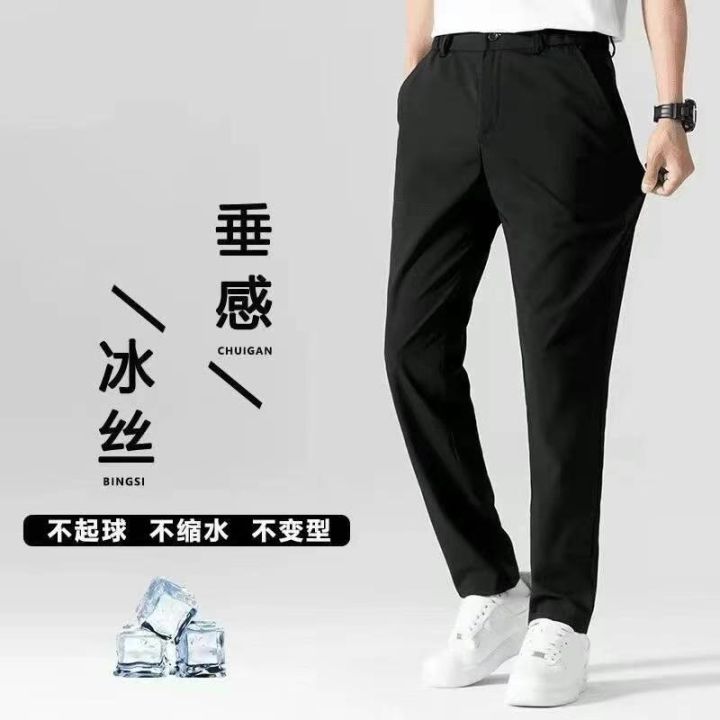 四面弹夏季爆款男士简约纯色透气冰丝百搭宽松款西裤,...