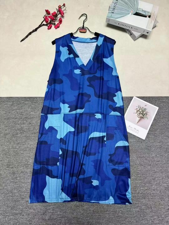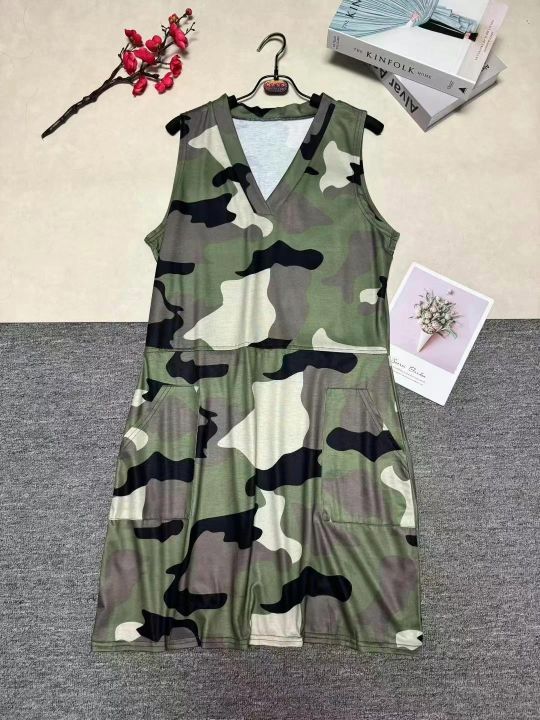 欧美女装春夏季新品 休闲时尚个性无袖迷彩连衣裙,整款三色,数量400条,码数S-2XL,高弹力品质好,拉链式独立包装。
