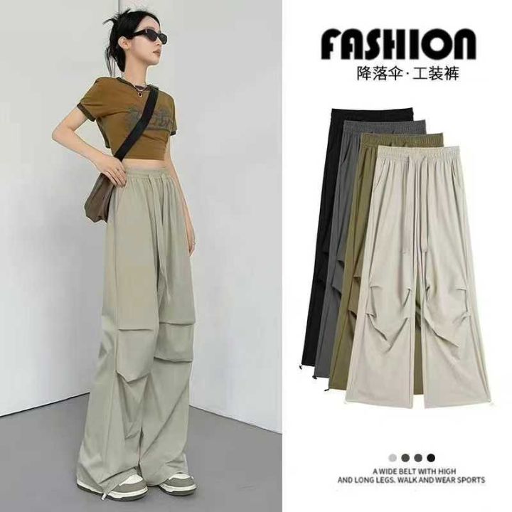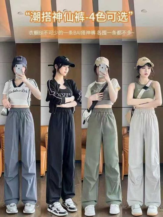 ☕️速干弹力美式运动裤女装裤子女夏季薄款休闲降落伞裤阔腿裤220条全清13.8元,分货14.8元,码数S到XL,单款3色,独立包装。