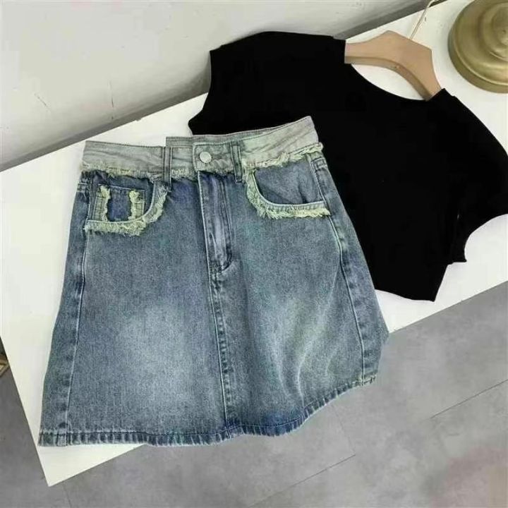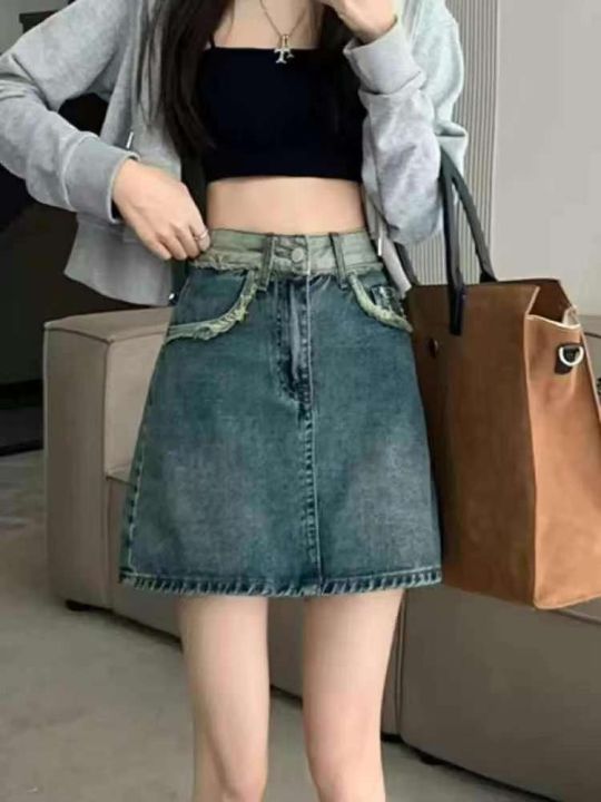 南城高品质辣妹复古牛仔短裙☕️150条全清12.8元,分货13.8元,码数S到XL,全部带内衬,新款半身裙女潮夏季新款a字半裙高腰包臀牛仔短裙子