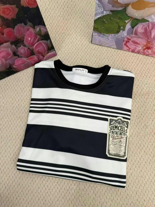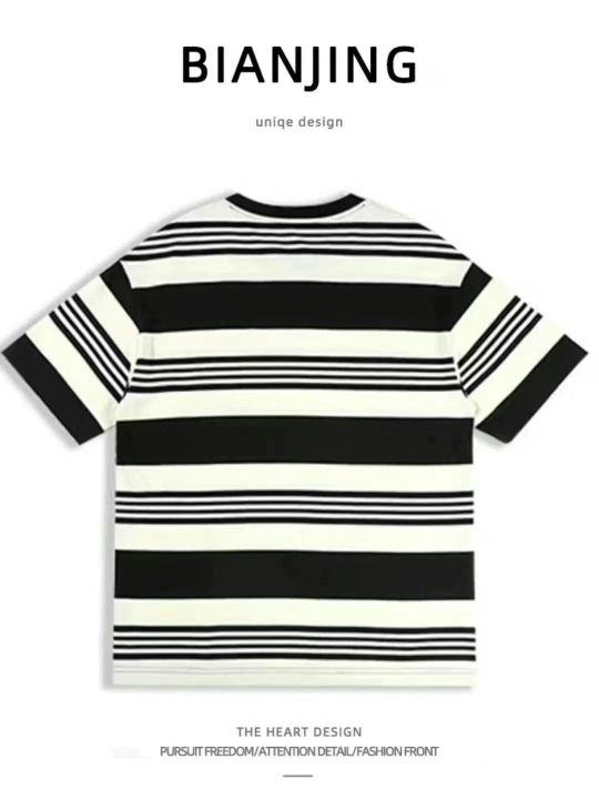 6.9清(#*****3059)210件高街美式徽章条纹短袖t恤...