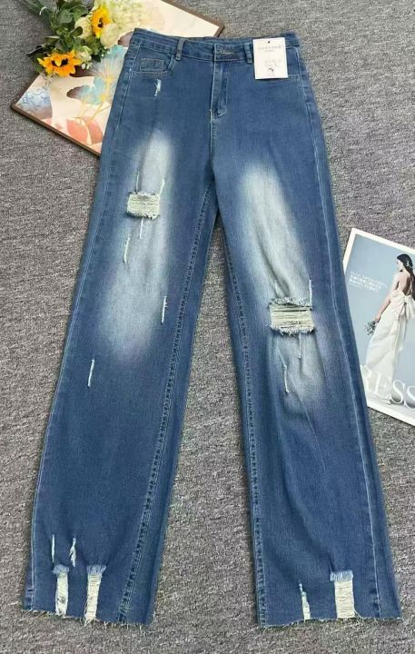 捡漏款,高弹力女装洗水棉牛仔直筒裤,独立包装带吊牌...