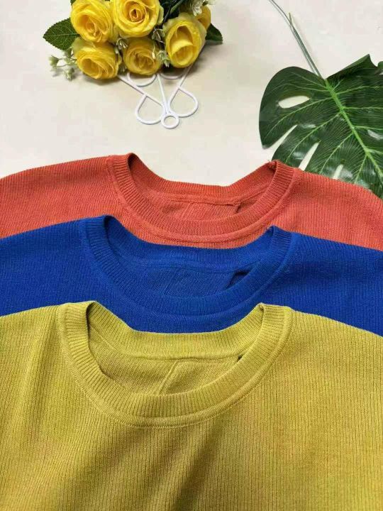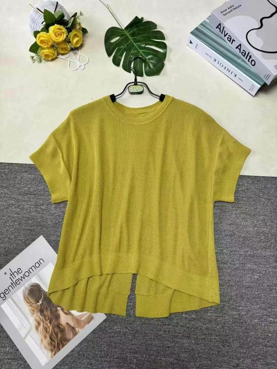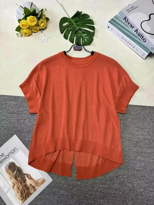 时尚洋气圆领短袖针织衫上衣,背面开叉设计,整款三色,品质好,都有独立包装,均码,240件,清5.9