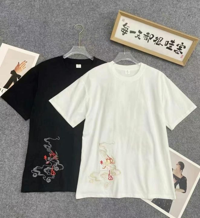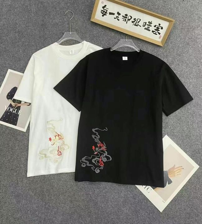 面料舒适透气,后领包边,图案刺绣,背后大图,