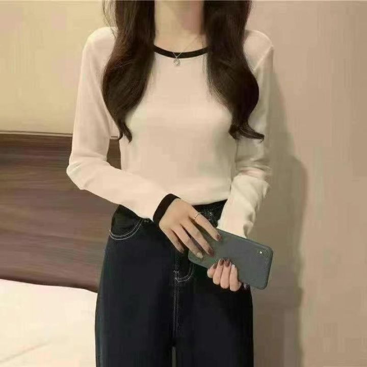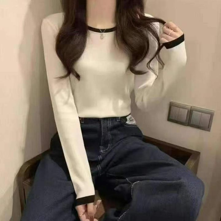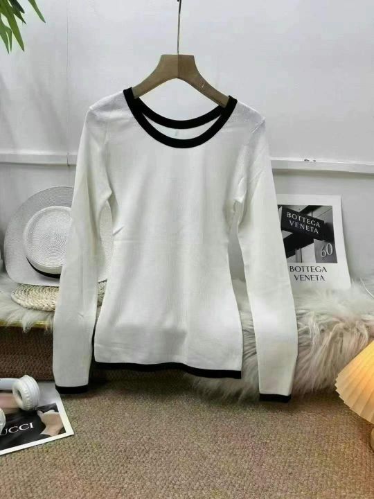 白色针织衫 早秋款内搭女装 圆领修身长袖上衣,数量46...