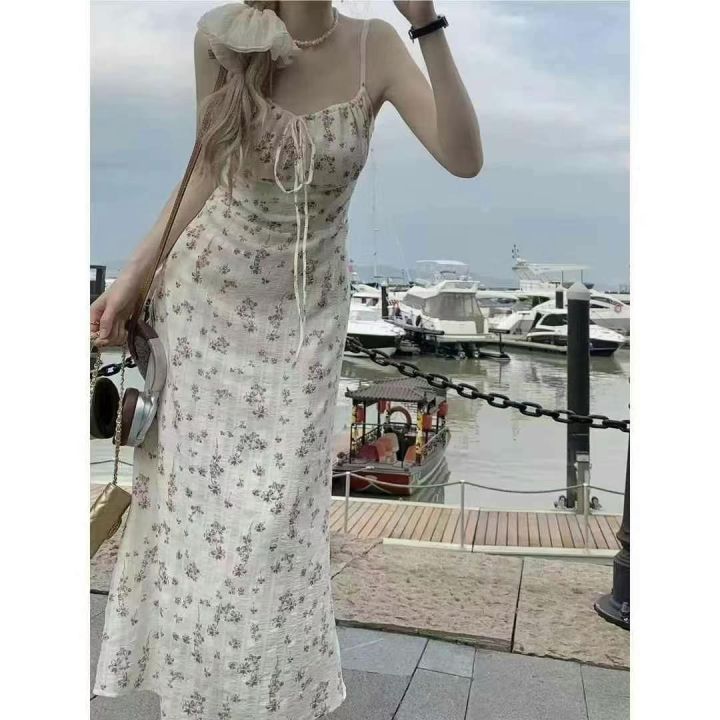 全清7.8气质收腰显瘦碎花吊带连衣裙夏吊带复古甜美初...