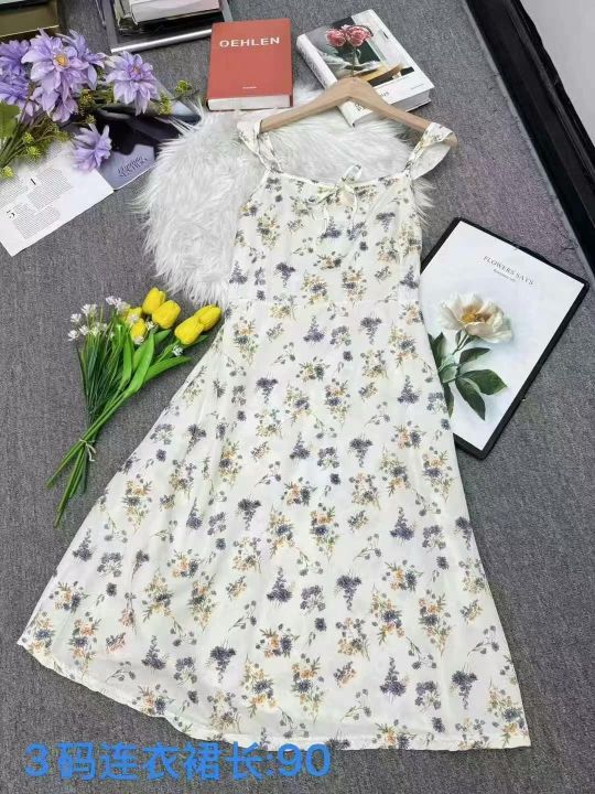 气质收腰显瘦碎花吊带连衣裙夏吊带复古甜美初恋仙女裙,165条,1-4码,独立包装,型号0623#38