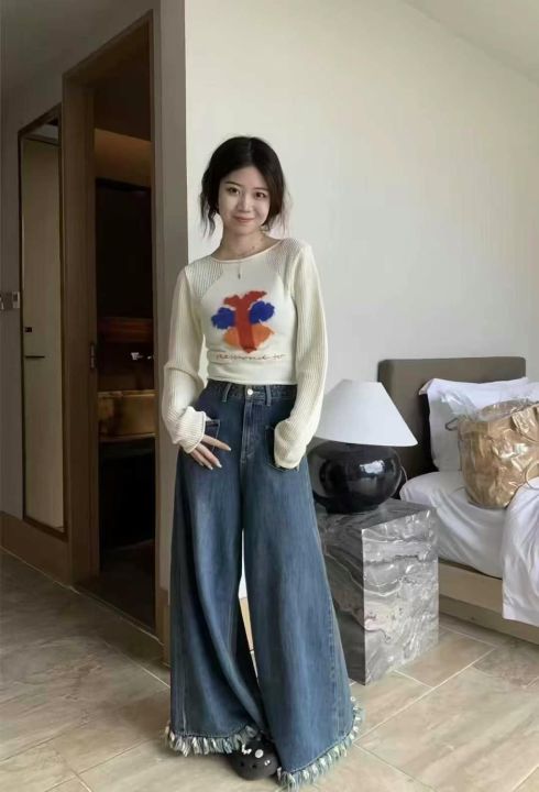 早秋新款甜辣纯欲风涂鸦提花长袖针织套头毛衣,独立包...