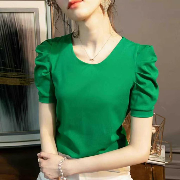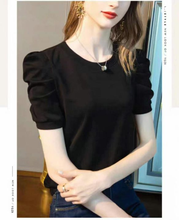 3.5清工厂回收227件时尚褶皱设计泡泡袖纯色短袖T恤女...