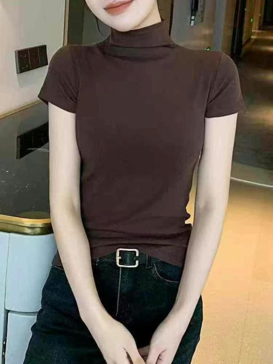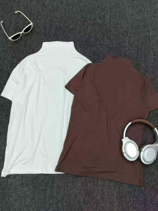 数量130 件左右,全清福利价5.8,码数 L~3XL,2025年新款夏季洋气螺纹半高领修身短袖t恤,ins内搭半高领显瘦洋气半袖打底衫上衣,独立包装,有吊牌