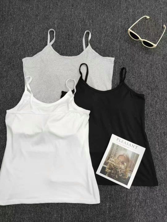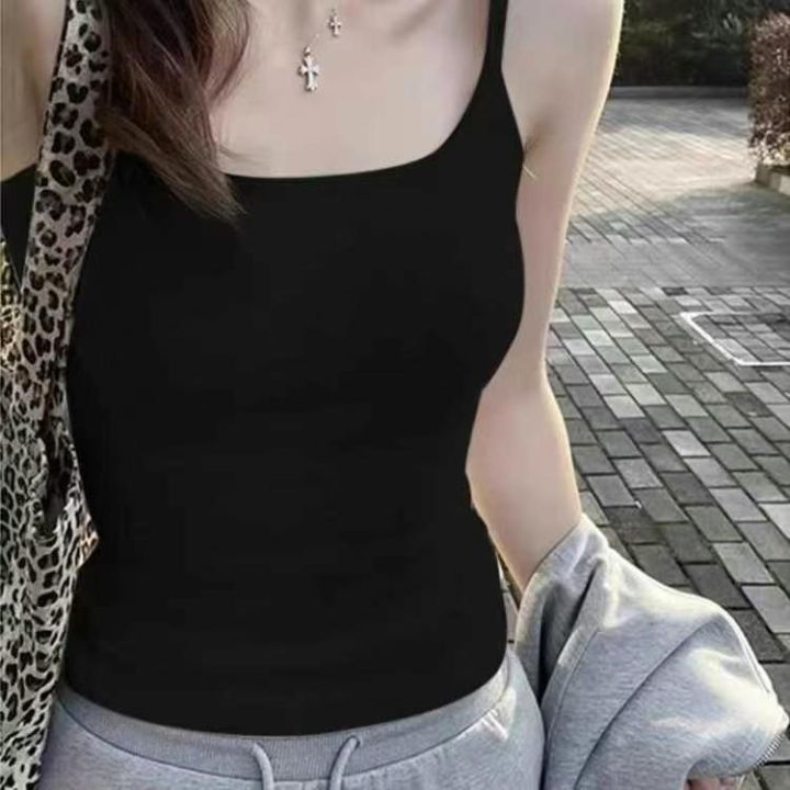 带胸垫纯色小吊带背心女夏纯欲少女外穿内搭修身美背打...