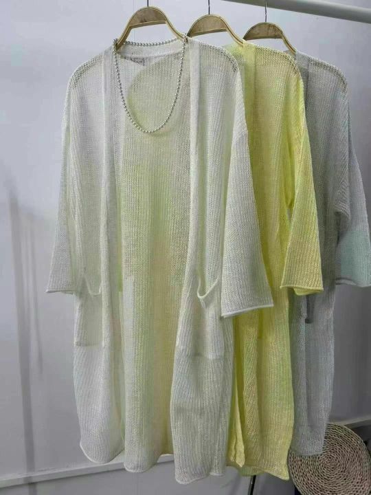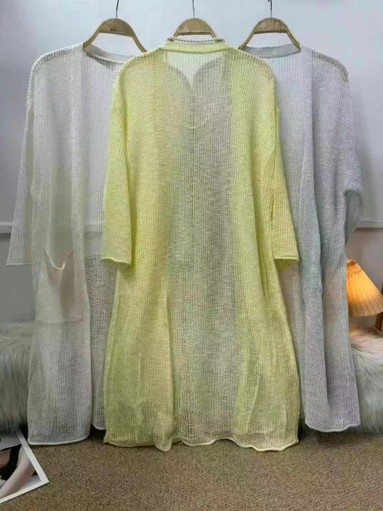 单款三色,84件:均码,独立包装,实物拍摄,图片款式,防晒衫薄款针织开衫 女士夏季新款宽松中长款冰丝空调衫 外搭披肩外套.全清6.9