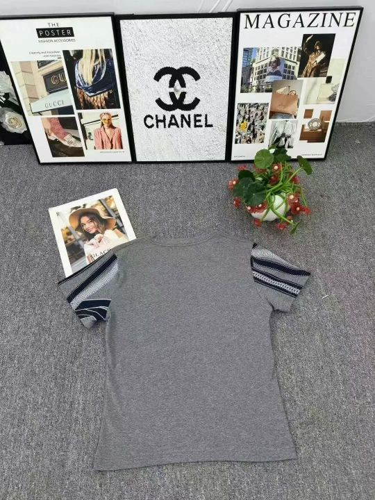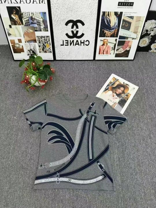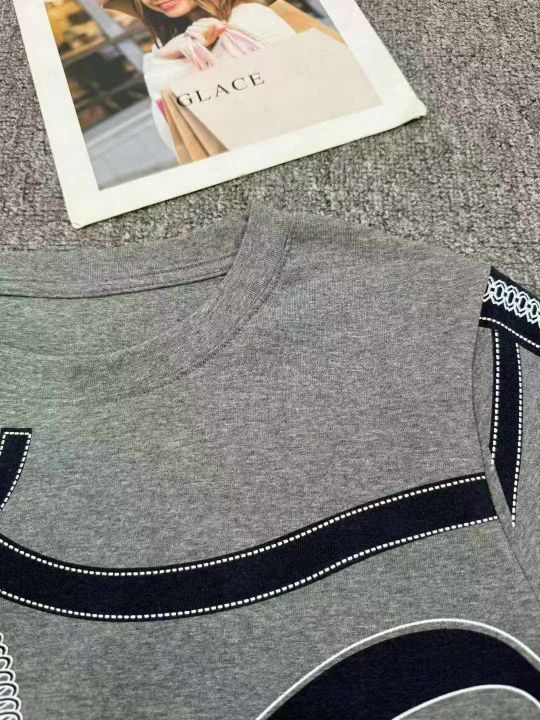 高品质夏季新款圆领灰色纯棉短袖T恤时尚高级印花独特设计感小众女上衣,带弹力,数量348件,码数S-2XL,有独立包装,货品干净漂亮,