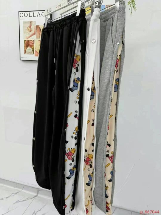 码数:S~3XL!独立包装!货品干净!分货+0.5 National Trend Bear Patch Button Pants بنطال أزرار بلصقات دب على الطراز الوطني_@_@