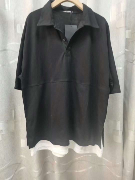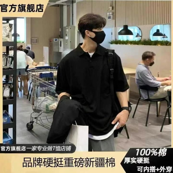 美式朱迪纯棉polo衫男士宽松街头潮牌黑白撞色短袖T恤...