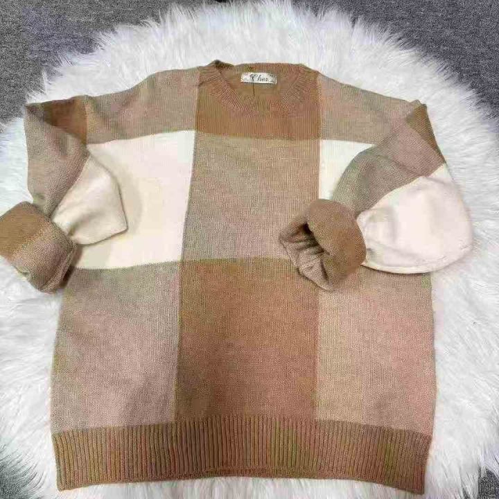 全清10.9,日系拼色针织衫女秋冬季新款宽松显瘦套头衫慵懒风高级...