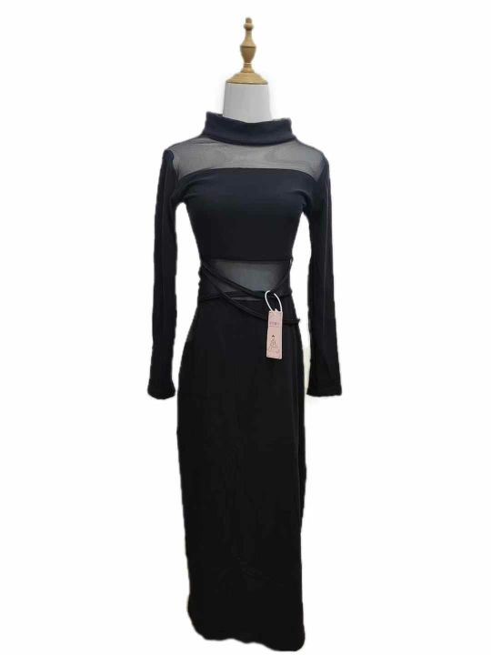 [月亮]:网纱拼接德绒辣妹长袖连衣裙