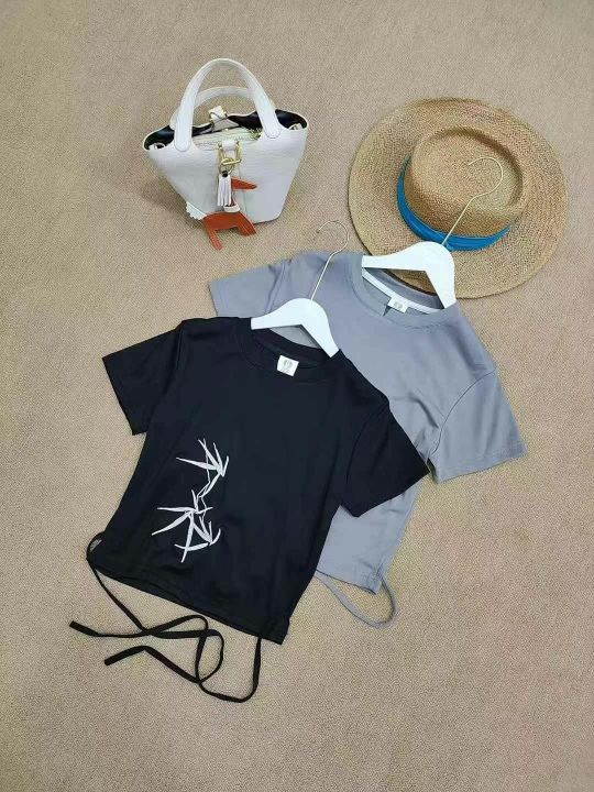[月亮]:新中式刺绣绑带设计辣妹包边T恤