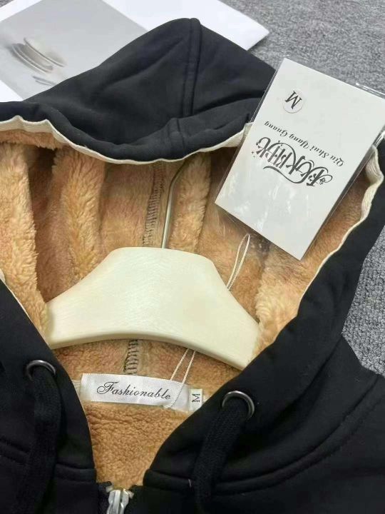 ☕️纯棉刺绣拉链➕羊羔绒卫衣外套1579件全清21.8元,分货➕1元,独立包装,码数S到4XL,黑色灰色,精品好货男女同款冬季羊羔绒加绒加厚纯棉卫衣女运动上衣拉链开衫宽松休闲外套