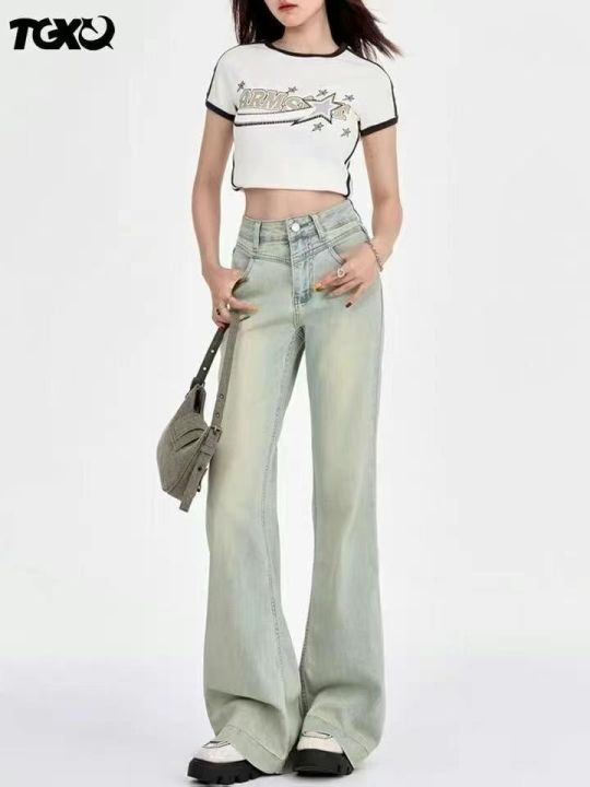 春夏新款高品质女装洗水棉微喇叭牛仔裤,独立包装带吊...