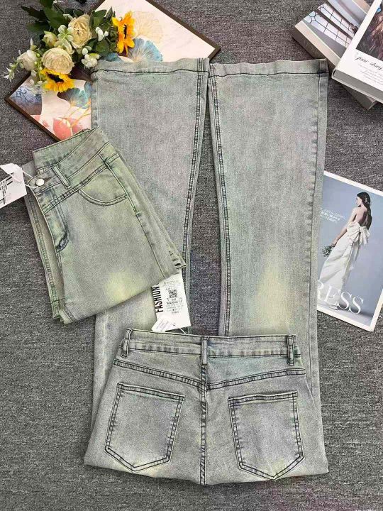 春夏新款高品质女装洗水棉微喇叭牛仔裤,独立包装带吊...