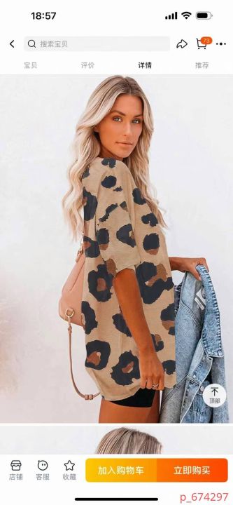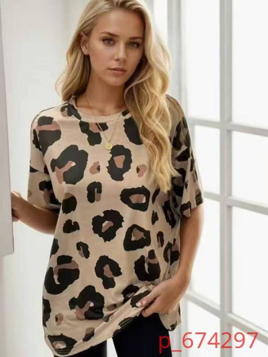 编号:[15228] ¥4.9元 女装/女士服装 上衣 夏天 短袖卫衣/T恤 2025夏季豹纹欧美风圆领套头半袖薄款女豹纹印花短袖T恤S-XL独立包装Style Leopard Print Loose T-Shirt Women\'s2025 Summer Leopard Print Short Sleeve T-shirt Women\'s European and American Style Round Neck Semi-sleeve Thin Pullover Women\'s Topتيشيرت قصير الأكمام برباط النمر للنساء 2025 بأسلوب أوروبي وأمريكي ياقة مستديرة نصف كم قميص رقيق للنساء 库存:70件