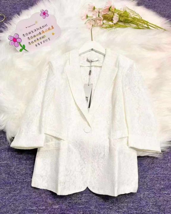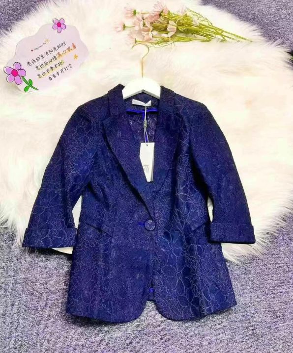 2025春夏款一粒扣修身蕾丝西装300件,品质好,和模特...