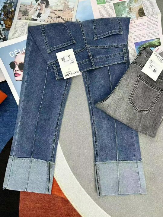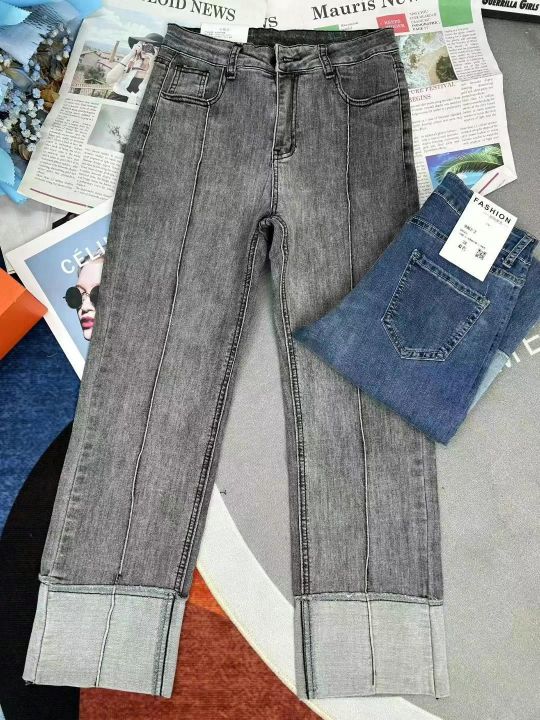 欧货港味高腰显瘦烟管弹力牛仔裤,整款2色,独立包装...