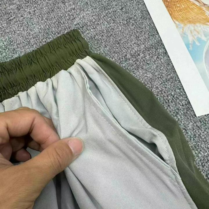 男士裤子夏季薄款拼色休闲裤松紧夏季拼接小脚宽松新款...