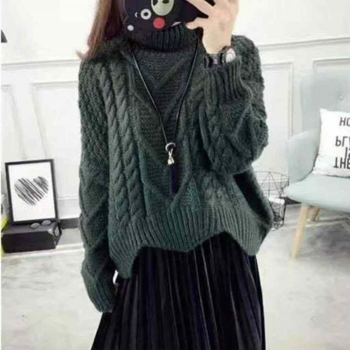 冬季新款高领设计款加厚麻花包芯纱套头毛衣,独立包装,均码面料软糯舒适,...