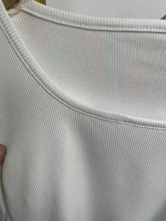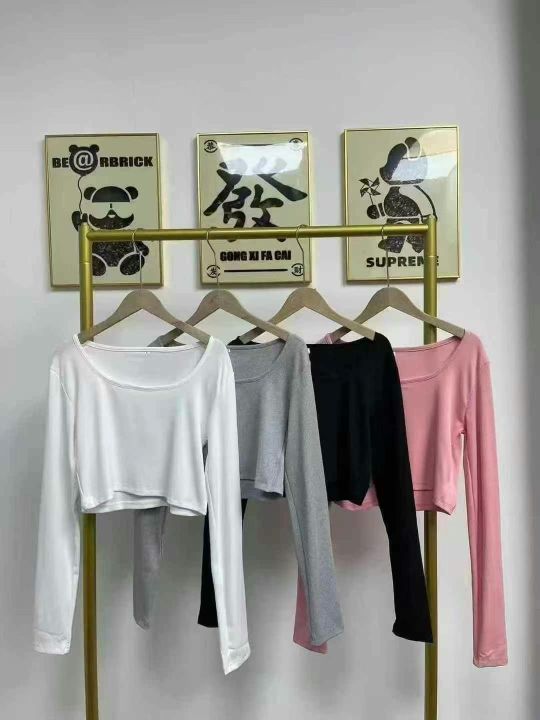天猫在售款2150件左右高品质冰丝螺纹靓妹短款长袖T恤,高弹力,单款四色,S-XL,全新货三件一包装