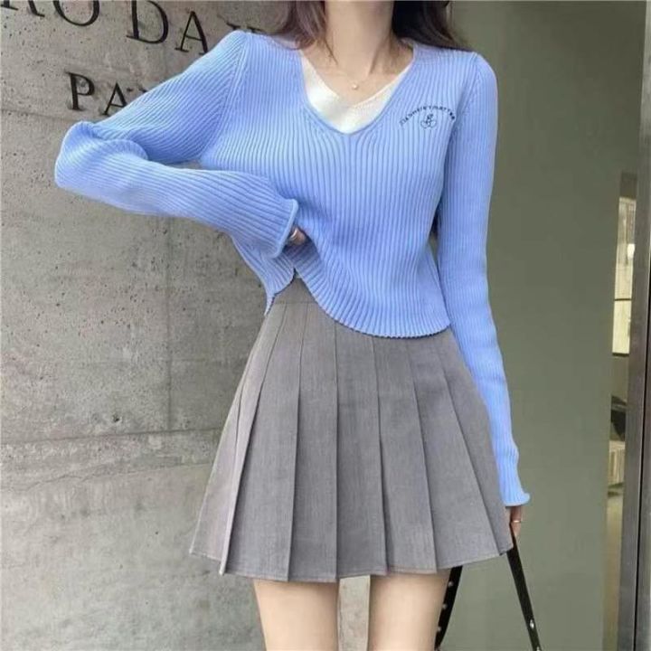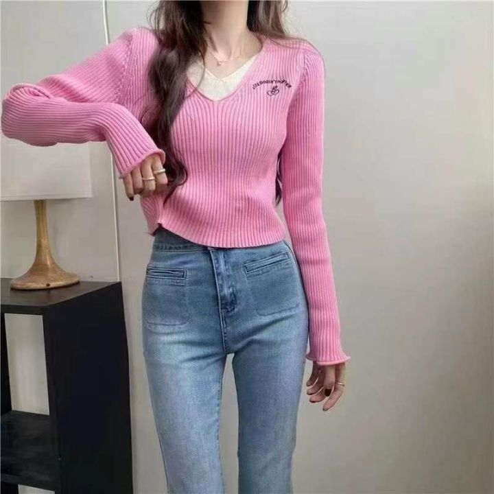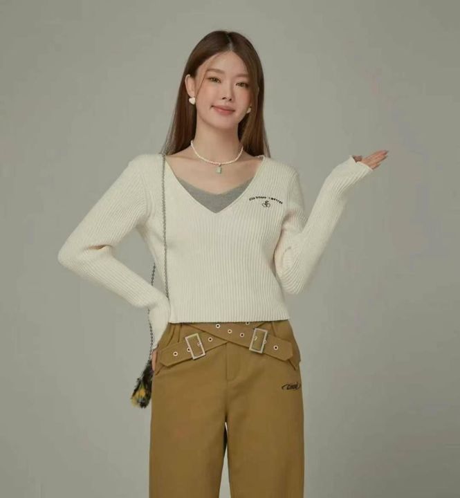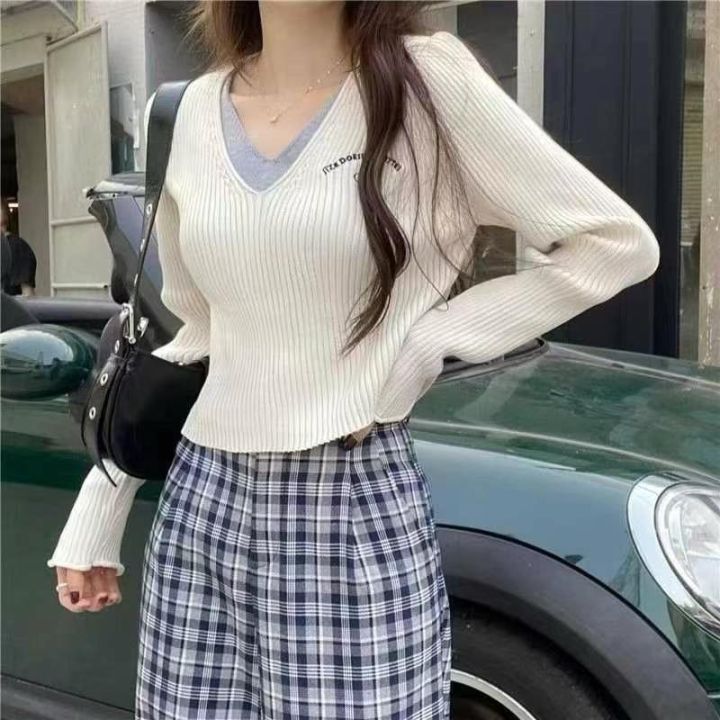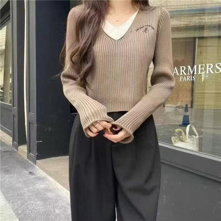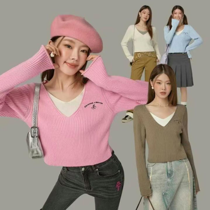 早秋新款女装假两件拼接字母刺绣长袖针织衫,独立包装,均码面料柔软舒适弹力大,670件,全清6.9元超低价秒杀!分货加一!