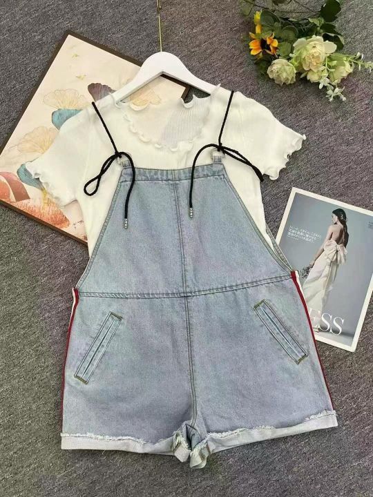新款夏季宽松韩版百搭减龄显瘦阔腿牛仔背带裤短,独立...