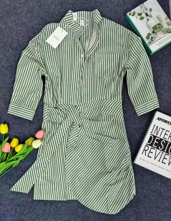 夏季薄款没计感气质收腰不规则条纹连衣裙,面料棉质平纹布,166件,SML,独立包装吊牌,全清9.8元
