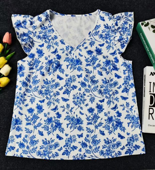 女装夏季法式没计感飞飞袖碎花上衣,432件,S-2XL,独...
