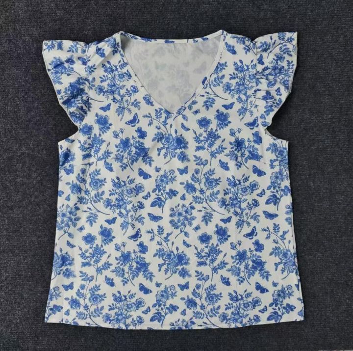 女装夏季法式没计感飞飞袖碎花上衣,432件,S-2XL,独立包装,全清3.8元,分货+0.5